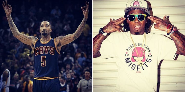 Sure, this might be some crazy coincidence, but mind you, JR Smith actually became one of the first athletes to join Young Money (hence the neck tat), and we all know who his favorite rapper is.