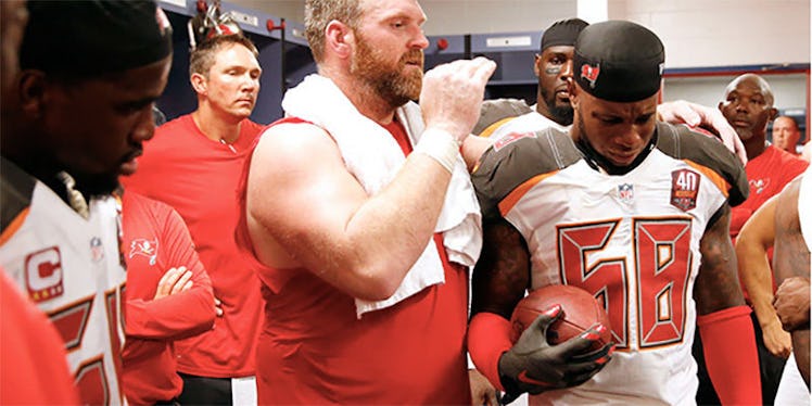 After the game, the Bucs' locker room congratulated Alexander on his performance and proceeded to give him the recognition he was due during an emotional rallying cry.