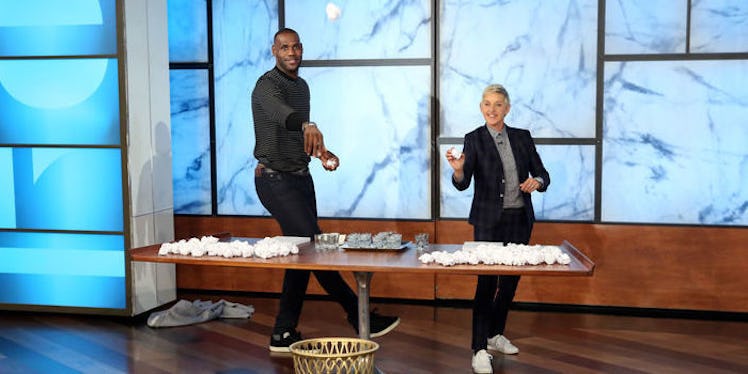 After shooting the breeze with Ellen for a few, LeBron James was challenged to the most competitive "Wastebasket Challenge" game you'll ever see.