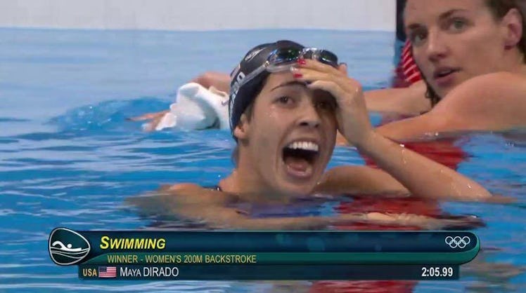 Madeline, who also goes by the name Maya, had been behind until literally the race's last stroke, when she finally overtook Hungary's Katinka Hosszú, who had been the favorite to win.