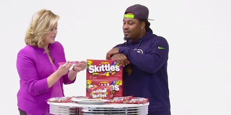And just remember, folks: It takes 12 packs of Skittles to equal one Marshawn Lynch.
