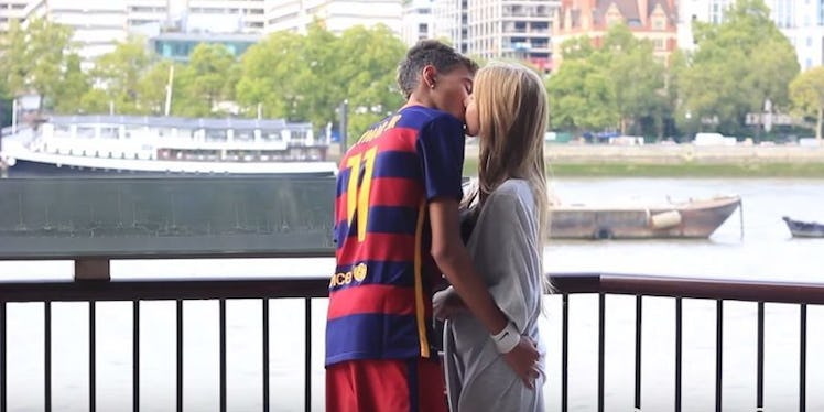 Ruben, er, Neymar, was decked out head to toe as a Barcelona player, performing soccer tricks and skills in the street, all with the goal of getting women to kiss him.