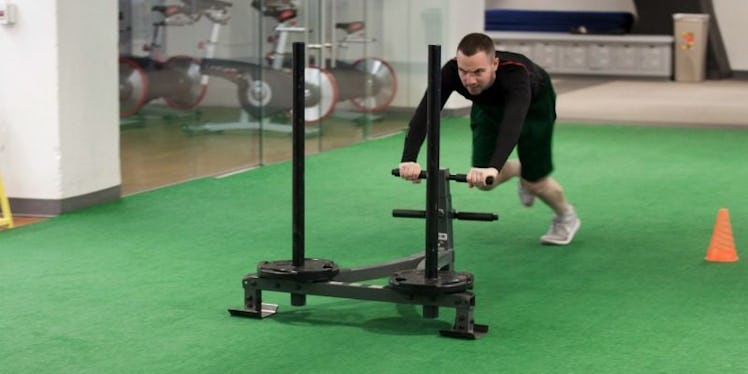 Suicides, as in: Drive the sled to the first of three cones, run to the front of said sled and drive it back. Repeat until you hit all three cones. Twice.