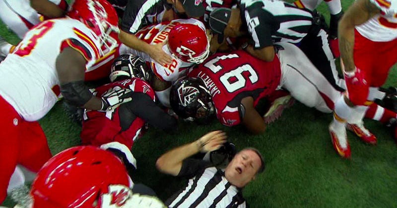 The pic came straight out of the Chiefs-Falcons game in Atlanta yesterday (a 29-28 win for the Chiefs, btw).