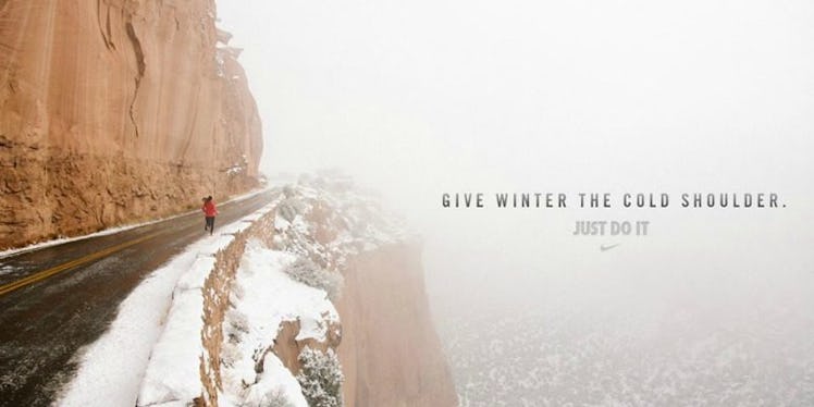 The video was launched to kickstart Nike's #GetOutHere campaign, which highlights a variety of cold-weather gear, like Nike Therma-Sphere Max and AeroReact, designed to keep you warm while you get your workout on in the winter months.
