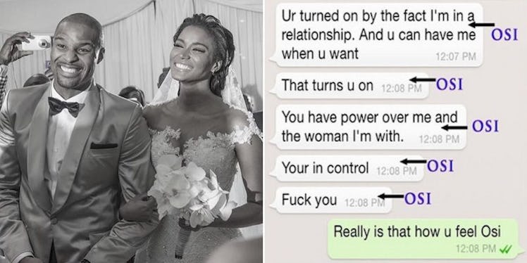 The day after Osi got hitched, his side chick blew him out of the water by creating an Instagram account and posting pics of their text conversations.