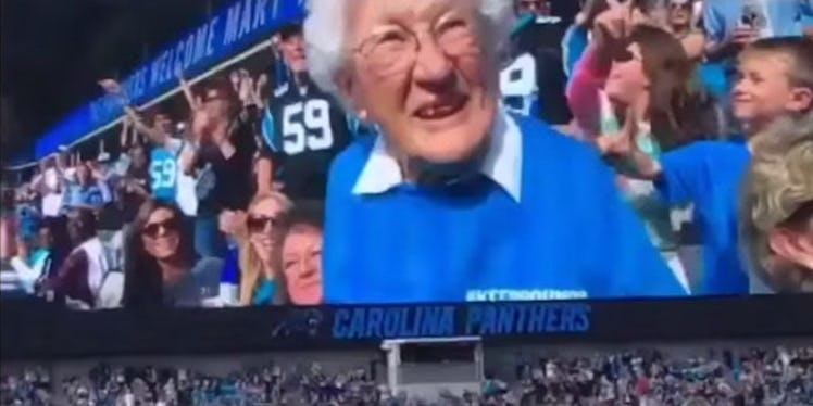 Yesterday, while the Carolina Panthers were moving to 13-0 and clinching their division, the Bank of America Stadium Jumbotron introduced the world to Mary Ward, the coolest Panthers fan ever.