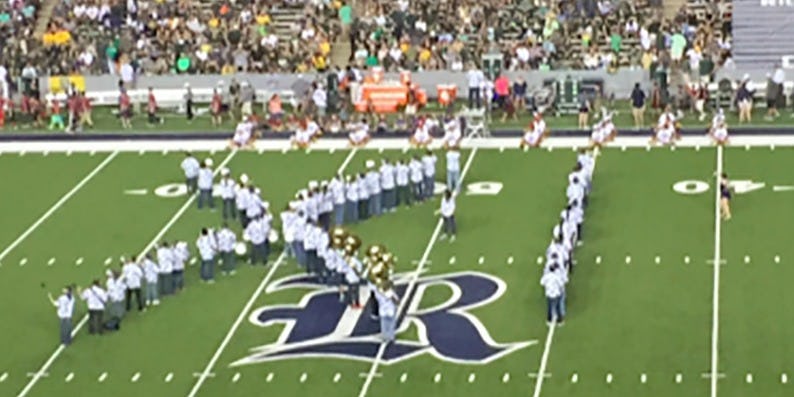 As for Rice's marching band, it has a history of taking stabs at other schools' scandals. In 2012, the Marching Owls made a "U$C" formation, a clear shot at Southern California's pay-for-play scandals.
