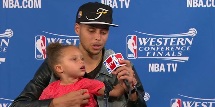 After her father scored 26 points in a help seal the Warriors' place in the NBA Finals, 2-year-old Riley stole the show.