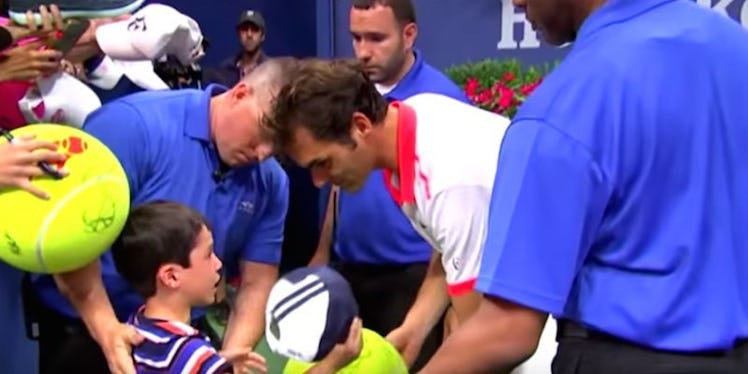 While he was signing hats, sneakers and balls, Federer spotted a young boy getting crushed by the fans behind him.