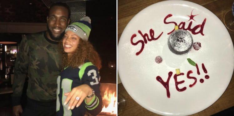 It appears Tiffany Luce had no idea Kam Chancellor was going to propose, and you can hear her say,