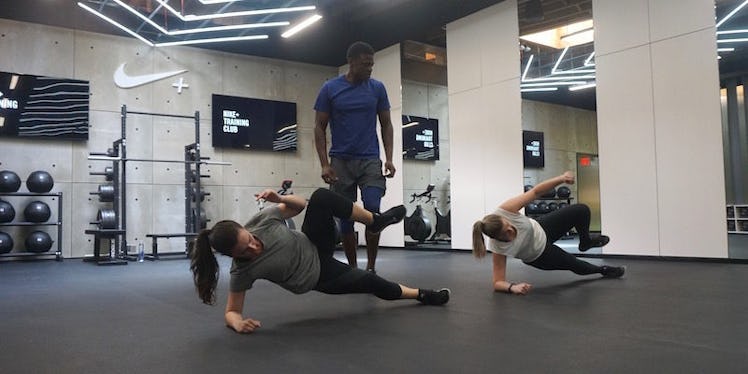 By the time I felt the itch of sweat beading along my scalp and my face turning a little purple, it was time to actually begin the workout. Launching the Nike Training Club app on the studio's oversized TV screen, Holder walked us through the intervals.