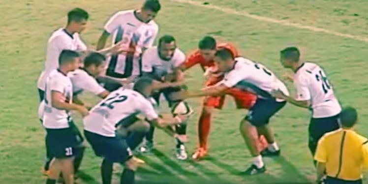 After striker Cesar Martinez scored a gorgeous volley for his club, Zamora FC, the forward and his teammates collaborated to produce one of the most freakish celebrations you'll ever see.