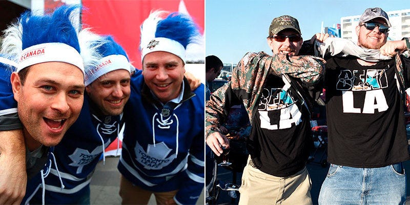 Drawn by the appeal of an original-six matchup, generations of fans decked in blue face paint, clown wigs and vintage jerseys with names such as Sittler, Bower and Sundin strutted below a giant welcome sign at the entrance.