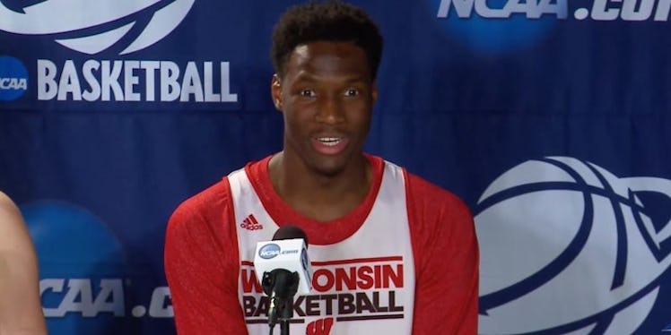 Badgers big man Nigel Hayes is gearing up for Wisconsin's Sweet 16 matchup with North Carolina, so maybe you can excuse him for not remembering how a microphone works.