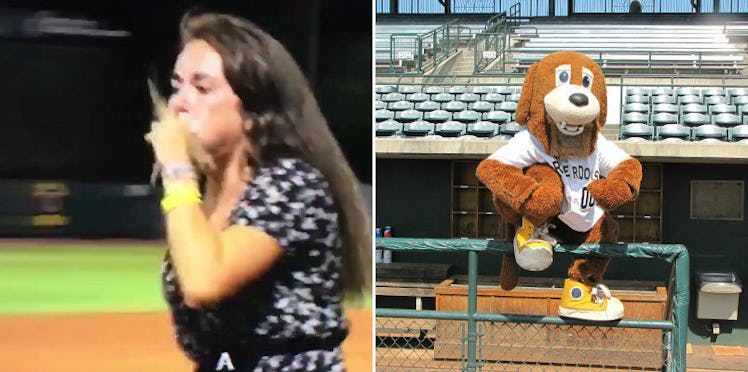 It was all going so well for this woman. She was doing her best at a between-inning ribbon dancing contest at a minor league baseball game.