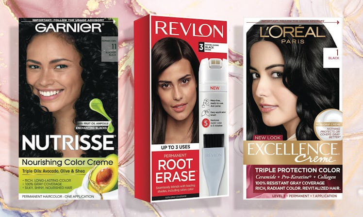 Hair dyes have a harder time penetrating gray hair, making it tricky to get full coverage if that's what you're looking for, but this permanent hair color from L’Oréal is a well-reviewed pick for covering even stubborn silver strands. The dye comes in seven black shades that run the gamut from a cool velvet black to a warmer soft black. The kit comes with a pre-color treatment made with moisturizing ceramides, a non-drip color cream made with strengthening keratin, and a weekly collagen conditioning treatment to help protect your hair between colorings. To optimize gray coverage, this formula includes ammonia.
