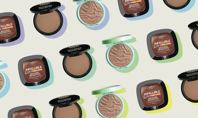 Gone are the days of feeling the need to spend $25-plus on a prestige bronzer from Sephora; these days, there are plenty of incredible drugstore alternatives to choose from. When shopping for the best drugstore bronzers, consider whether you prefer a matte or shimmery finish. Matte will always be a better option if you want to use your bronzer for contouring, too. And for those with oily skin, matte bronzers are especially preferred, as they tend to include oil-absorbing ingredients like talc and silica. Shimmer bronzers, on the other hand, will add an all-over glow, and can even double as a highlighter if you pick one up in a lighter shade. You can also try a cream bronzer if you prefer a more natural, dewy look sans shimmer, or if you tend to find products you can apply with your fingers easier to use. No matter what your preference, you'll want to look for a bronzer that's one to two shades darker than your natural skin tone, and be sure to invest in a great bronzer blush for blending.