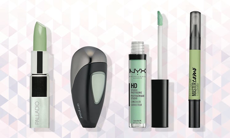 Concealer is one of those desert-island beauty picks I never want to be without — but neutral shades just scratch the surface of concealer's greatness. Color-correcting options, like green concealers, can calm redness caused by irritation, rosacea, and acne flare-ups, or just general flushing. For a quick refresh, green concealers work to neutralize redness because green and red are contrasting colors (remember when you learned about the color wheel in elementary school?). Choosing the best green concealer for you shouldn’t be overly complicated, as you don't have to worry about finding a shade that blends in with your skin tone. In general, pale, mint-green colors will work best with fair to tan skin tones, while true green concealers are better suited for deeper skin tones. When selecting your green concealer, keep in mind what formulas you do (and don't) like — e.g., liquids, sticks, or creams — as well as what tends to work best with your skin type. Naturally, a green concealer will be best for spot treating redness, while anyone looking to neutralize redness across a larger area of their face may find a green primer to be more helpful.