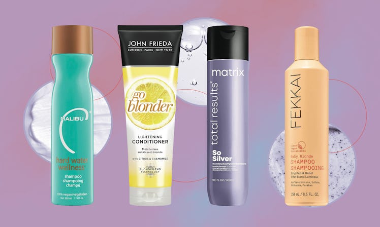 Noonan explains that mineral buildup can make hair look dull and brassy, and can sometimes even turn light hair green or gray, so removing these minerals will restore the vibrancy and tone of light blonde hair that’s become dull. She likes the Malibu C Hard Water Shampoo for this. It’s designed for people with blonde hair who shampoo in hard water, and it simultaneously strengthens and conditions hair as it removes metal and mineral buildup. Key ingredients include glycerin, panthenol, and hydrolyzed rice protein, and it’s topped off with a yummy, orange sorbet scent.
