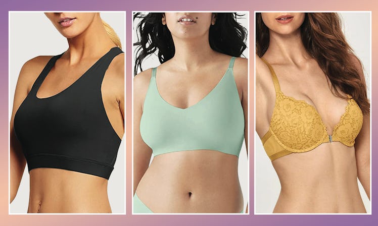Beloved by editors and Amazon shoppers alike — with more than one devotee referring to it as “the Holy Grail of bras” — this light-as-air bra has bonded edges in a velvety microfiber that slides under the clingiest knits. The adjustable straps convert into a racerback when you need it, and its wire-free design comes with removable pads so the bra feels as invisible as it looks. Another thing to love: the wide band wraps your torso in gentle support. One Bustle commerce editor raved, “It's so comfortable I usually forget I'm even wearing it, and the fabric is thin and seamless, so it disappears under clothing."