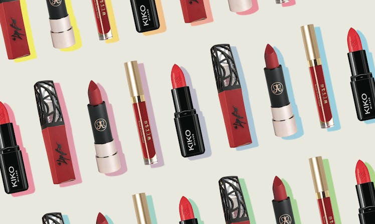 Ever wondered what makes a red lipstick really pop? Aside from the color itself, taking your skin tone into consideration can impact your overall look and help you find your most complementary shade. "For those who have olive skin, I would look for red lipstick with more of an orange undertone," says makeup artist Joanne Marchevsky of the best red lipsticks for olive skin. But that's not exactly a hard-and-fast rule, as Marchevsky explains that she likes to take a person’s eye and/or hair color into consideration, too. "If you have blue eyes or blonde hair with olive skin, I would look for a lipstick with blue undertones," she tells Elite Daily. "This brings out the blue in the eyes, so the olive skin won't even be a factor because you may blur or even cancel a little of the olive skin and focus more on the eye with lips that match the undertone of the blue," she explains, emphasizing that everyone's personal preferences are different.