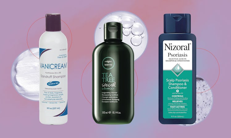 Though not as common as face acne, scalp acne — and the pain, itching, and inflammation that can come along with it — can be just as frustrating to deal with. "Scalp acne will appear very similar to acne on other areas of the body with red bumps and pustules," dermatologist Elyse Love tells Elite Daily. When it comes to treating the condition, the first course of action should be switching out your shampoo. According to Dr. Love, the best shampoos for scalp acne contain pyrithione zinc or salicylic acid. "Pyrithione zinc is antibacterial and antifungal to help decrease breakouts," she explains, adding, "salicylic acid helps to exfoliate the scalp and decrease oiliness to prevent clogged pores."