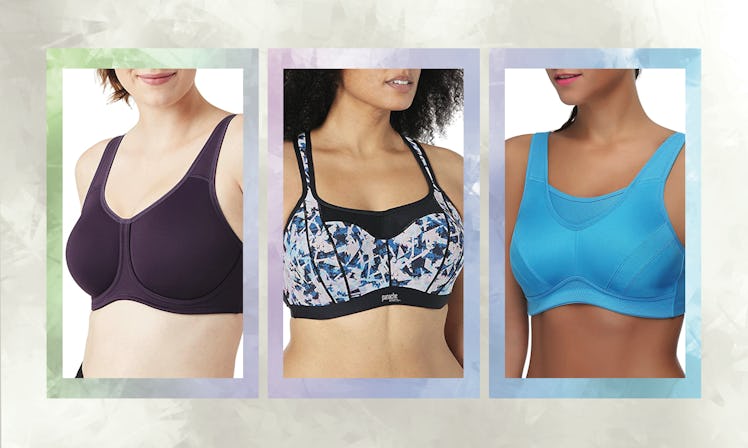 This plus-size underwire sports bra hits all the marks of a good sports bra for big boobs: It’s made from a sweat-wicking microfiber fabric with just 6% elastane for minimal stretch; has a supportive underwire and hook-and-eye closure; and the straps are convertible, so you can wear it as a racerback. The encapsulating cups are composed of three panels (side, bottom, and top) for structured support that lifts and shapes each breast individually. Pro tip: This bra uses U.K. sizing, so be sure to check out the conversion chart when selecting your size.