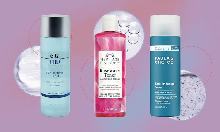 If you have sensitive skin, you know all too well that using the wrong product even just once can lead to irritation and inflammation that can set you back for weeks. When it comes to toners, you may have thought the only options were harsh astringents that should be avoided entirely (and to be fair, if you grew up in the '90s or early 2000s, that's pretty much true). But dermatologist Geeta Yadav, who spoke to Elite Daily for this article, says that the best toners for sensitive skin will actually help to rebalance — and even soothe — your skin, typically using a blend of hydrating and calming ingredients (instead of drying alcohols and astringents). "Beyond the better-known benefits of helping to control oil and removing lingering dirt and makeup that may not have been thoroughly washed away by your cleanser, toner helps rebalance your skin," says Dr. Yadav, who explains that most cleansers disrupt the skin's natural pH balance. "The more acidic pH of toner helps reharmonize your skin," she tells Elite Daily, adding that the pH balance of your skin is important when it comes to keeping skin moisturized and protected from bacteria.