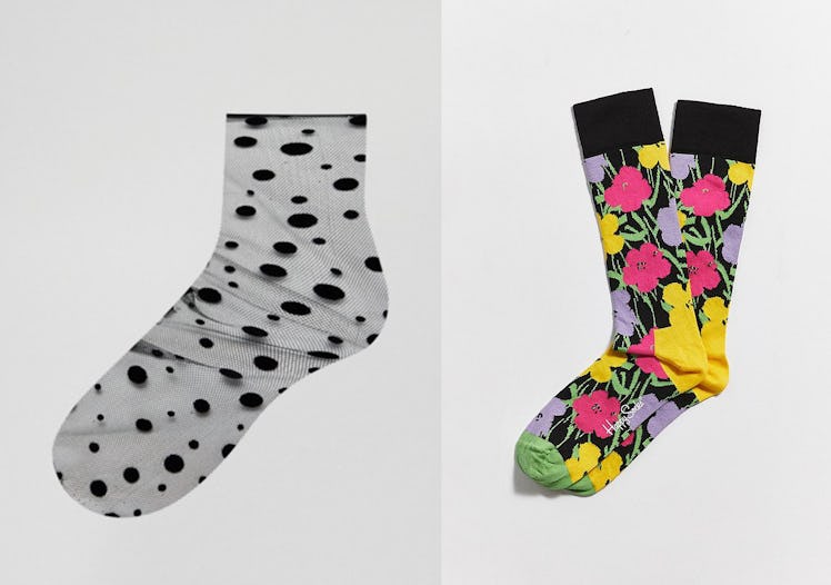 To me, socks are the coolest and most creative wearable thing to style a look with. Slipping some netted socks with a cool pattern on them underneath your strappy heels will change your entire look, while letting socks with a cute print poke out from beneath your cropped jeans adds some subtle and quirky cool. And even if your socks aren't ever seen by anyone but yourself, they're still super cute and can be super silly. Okay, I'm done waxing poetic about socks now (and I'm sure you're over reading it) — shop 14 of my favorite styles below.
