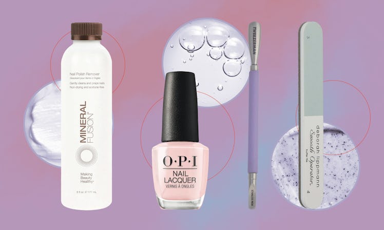 If this is where you usually reach for a moisturizing hand lotion or oil, don't. Any residue on your nails can mess with the longevity of your manicure. "Finish up your prep by wiping [the nails] with a non-acetone nail polish remover," Rae says, explaining, "This will remove any surface oils without drying out the surrounding skin." Mineral Fusion’s nail polish remover is an acetone-free option that's still strong enough to remove dark colors and glittery polishes. If you struggle with cotton pads leaving lint behind on your nails, which then gets embedded into your polish, switch to lint-free nail wipes.