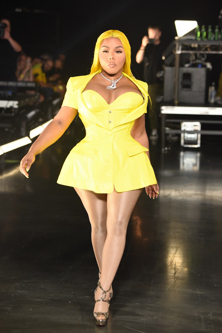 Rapper Lil' Kim made everyone's head turn as she walked in the VFiles spring 2019 runway show at the Barclays Center in Brooklyn, New York, during New York Fashion Week. The performer, who rose to prominence in the '90s, wore a matching neon yellow blazer and corset as she closed the show, and even had the hair and nails to match.