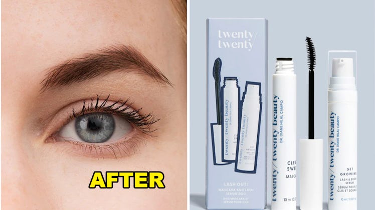 Twenty/Twenty recommends using the mascara at the beginning of your day, layering on as many coats as you like to get your desired effect. At bedtime, after you’ve cleansed your face, use a clean finger to gently work the Get Growing Lash & Brow Serum into your brows and lashes. The serum contains a trio of soothing oils — castor oil, coconut oil, and argan oil — to help support healthy lash grow without irritation. Think of it as an overnight mask for your lashes.
