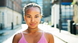 After applying your Vs all over, take a slightly dampened beauty blender and blend this out. If you don’t like using sponges, don’t fret. “Using your fingers will also give a natural, lightweight finish to the skin,” Stretch says. If the blush looks too light once you’ve buffed and blended it, up the ante slowly. Stretch advises working in layers until you achieve the intensity you want.