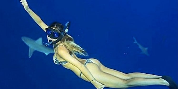 My ass has never looked that good doing anything, and it certainly wouldn't look like that when swimming with sharks.