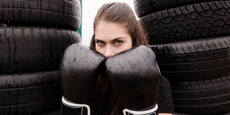 Pro tip: Always keep your fists up by your face, and bring your arms back close to your body after you punch. Keep your knees soft, and your weight forward on your toes.
