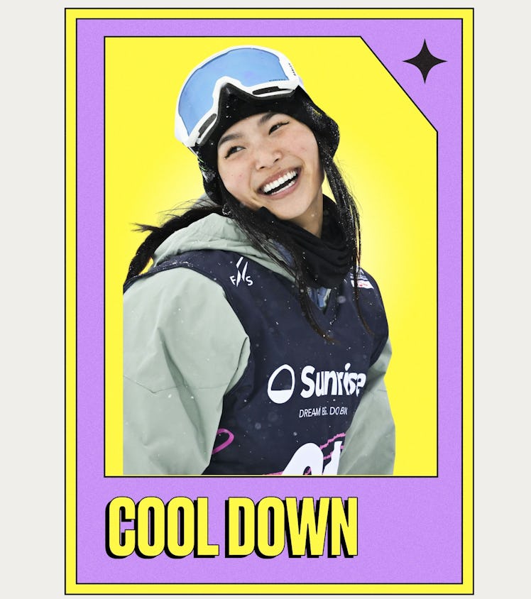 Chloe Kim: After a competition, I’ll go back home, sit on the couch with my base layers for a few hours, eat dinner, and go to bed. Sometimes, I play some games, but that’s about it. I’m a grandma in many ways. I’m too tired to do anything.