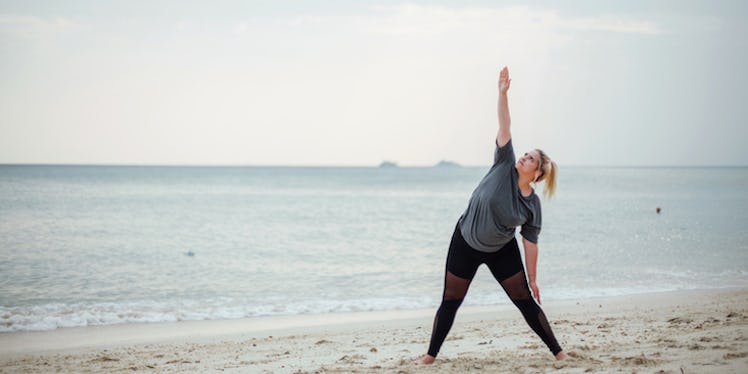 Not only are you able to enjoy nature's greatest majesty (aka the deep blue sea), but since any kind of movement is automatically harder to do in the sand, even simple reps of three or four exercises can make you feel pretty great, pretty fast.