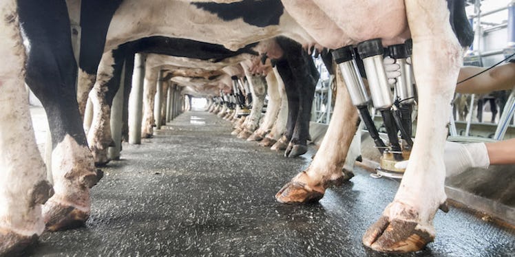 Essentially, this means the cow is pregnant for most of her life. This, in effect, causes a painful bacterial infection called mastitis, which goes into your dairy products. The machines that latch on to pump their milk are also pumping that infection right into your cereal bowl, the frozen yogurt you splurge on and the cheese on your pizza. As if that wasn't bad enough, a high dairy intake has been linked to prostate cancer, ovarian cancer, acne, type-1 diabetes, MS and more.
