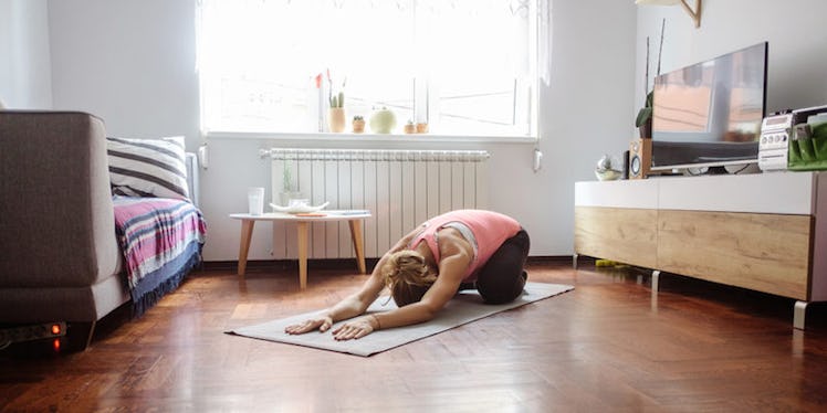 If there is enough space in the room with the TV, you can set up a yoga mat, weights and any other equipment you want to use.