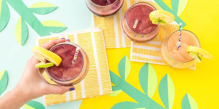 They're not only refreshing, but they also require only two ingredients to make. We suggest buying a couple bottles of wine and pouring them into ice cube trays so you can have wine ice cubes stocked in your fridge, ready to go. Using red, white or rosé wine and a fruit sorbet of your choice, you'll soon have a homemade cocktail.