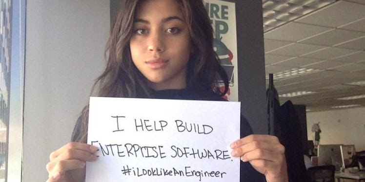#ILookLikeAnEngineer, despite often being mistaken for a marketer, designer, recruiter, or my fav—a girlfriend. pic.twitter.com/fNzhzSQCOr — glitter witch irl (@TessaHarmon) August 4, 2015