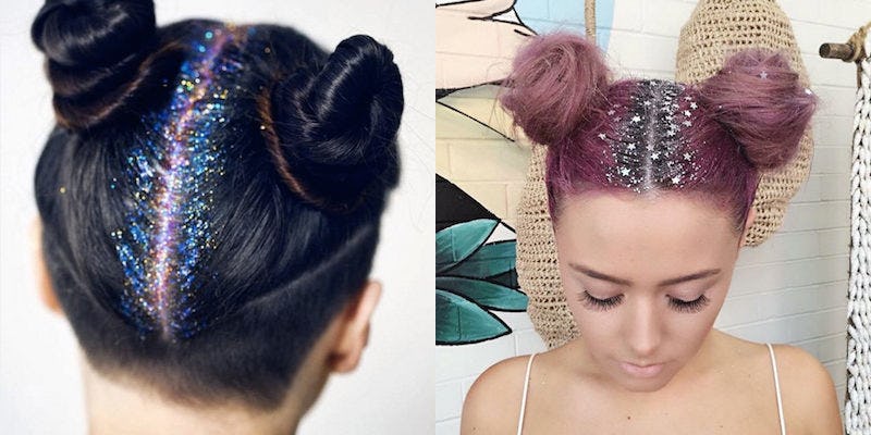 Scratch rainbow roots or hair contouring, because glitter roots make hair practically cosmic. And with minimal effort, too.