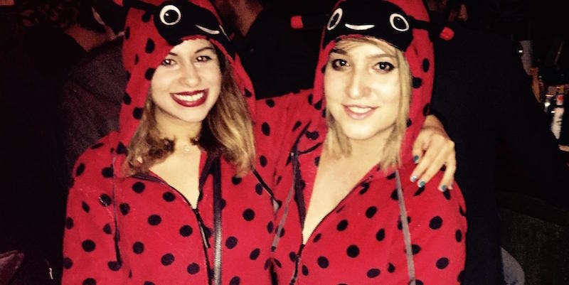 “Are you f*cking blind? We're bugs. Ladybugs!” I said, pointing at the antennae on my hood.