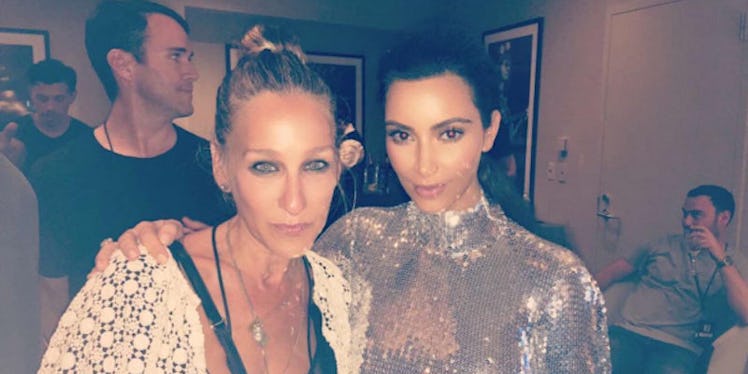 Kim also took a moment to pose with the great Sarah Jessica Parker. After all, the only person who'd approve of a look like this is Carrie Bradshaw.