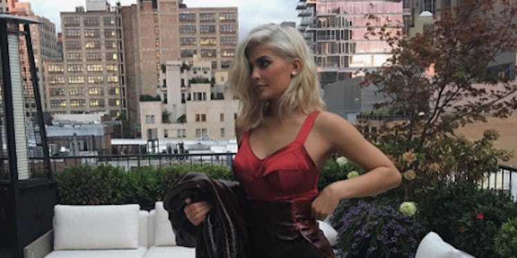 When Kylie finally emerged from her cocoon of money and hairstylists, she wore the fresh blonde with a Mur Mur red satin bullet bodysuit and leather skirt.