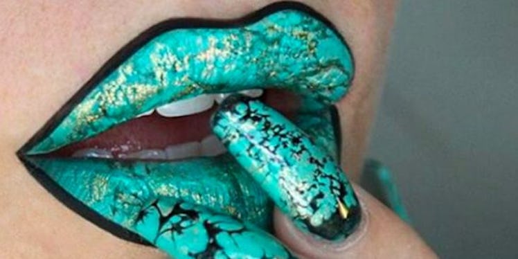 Perhaps because Instagram has provided artists with an up-close gallery of their work, people who generally don't care much about makeup can appreciate it in all it's detailed glory, and the new marble lips trend is a perfect example of it.