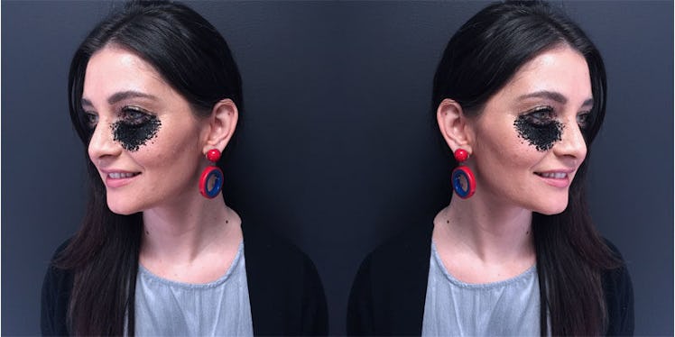 Over a bathroom counter or easily cleaned area, stir the grounds and water into a paste before applying them in a half-moon shape under the eyes. It's okay to use your fingers.