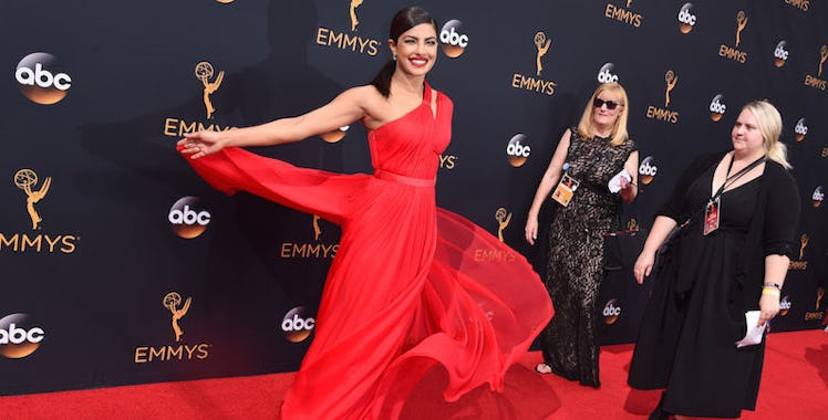 But, on the 2016 Emmys red carpet, it was clear enjoying a lovely dress isn't solely the domain of preteens. "Quantico" star Priyanka Chopra, resplendent in a ruby Jason Wu gown, was the first to twirl for the cameras.