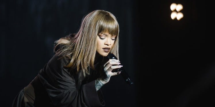 At Sziget Festival in Budapest, Hungary, the chameleon-like lady unveiled a new look during the songs “Love On The Brain” and "Consideration" — one that has me worried Rihanna's been listening to Kanye a little too much.